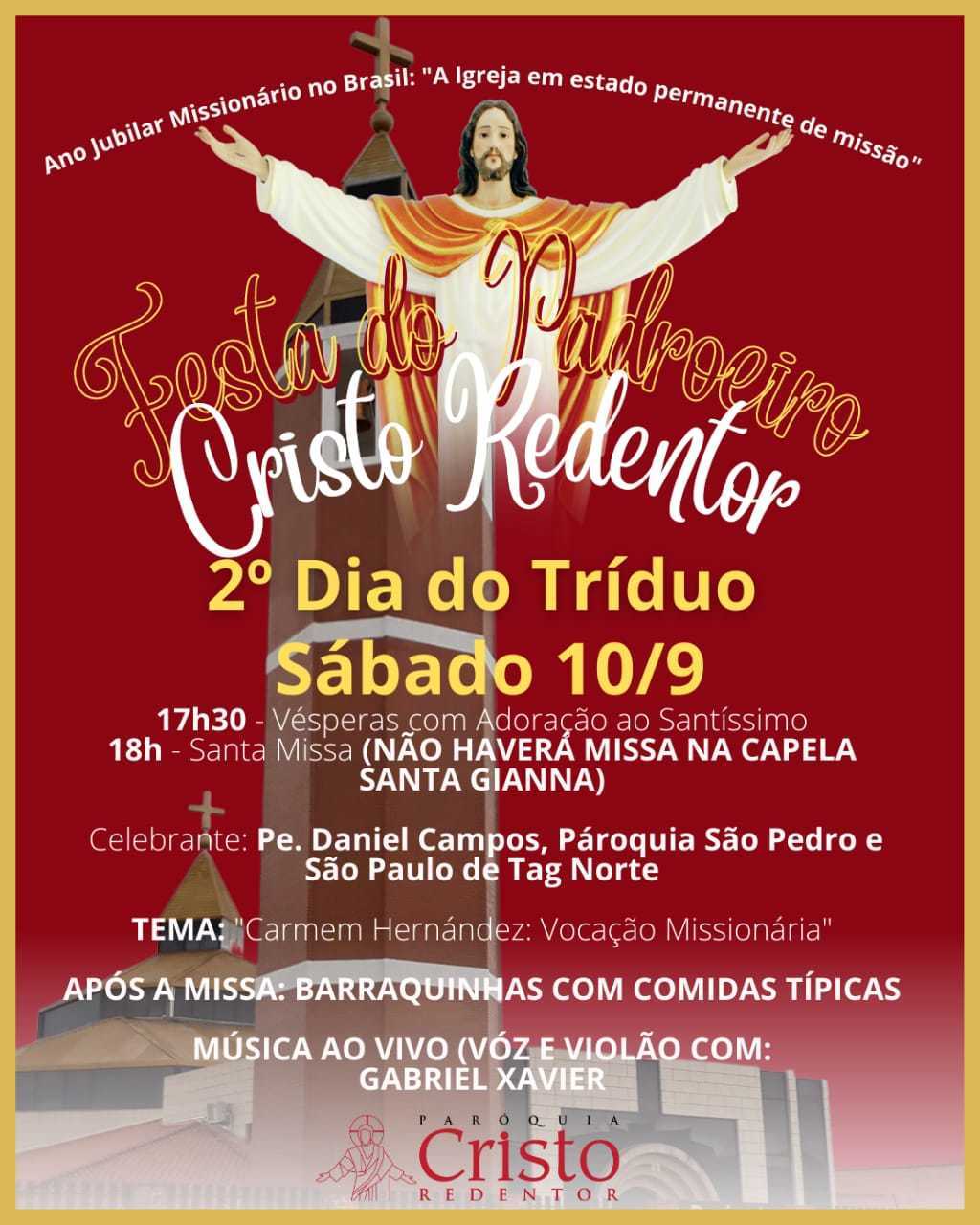 Festa Do Padroeiro - Tríduo Da Cristo Redentor (Sábado - 10/09/2022)